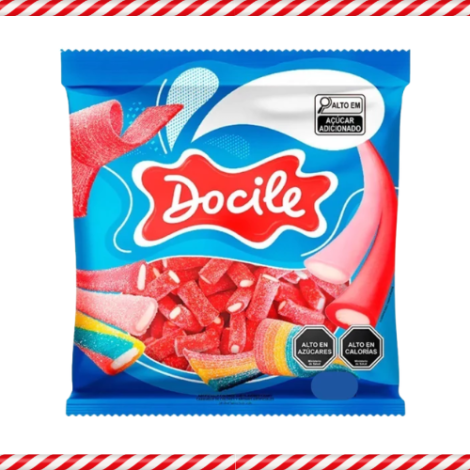 Gomitas importadas Docile sabor frutilla ácida en forma de tubitos, presentación de 500 gramos.