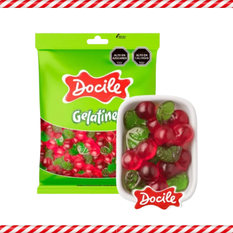 Gomitas importadas Docile con forma y sabor a cerezas, en presentación de 250 gramos.