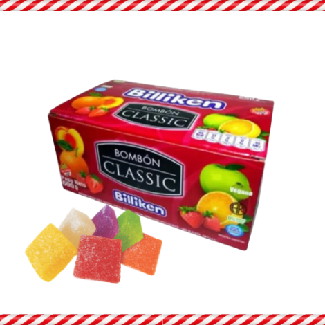 Bombones de fruta Billilen Classic de sabores frutales surtidos en presentación de 600 gramos.