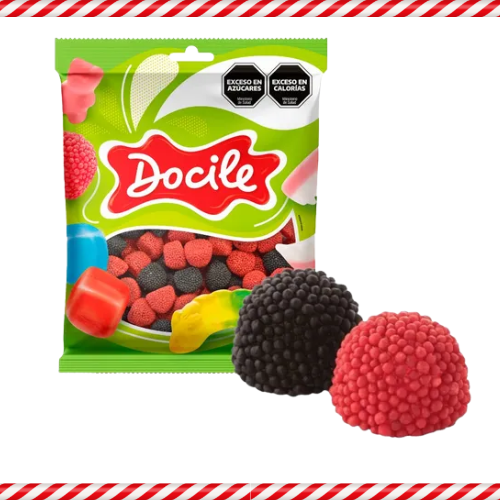 Gomitas docile con forma y sabor a moras silvestres en paquete de 250 gramos.